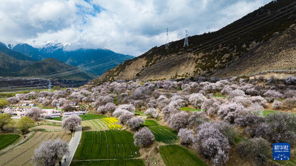 这是在林芝市巴宜区朵当村拍摄的桃花(4月3日摄,无人机照片)。新华社记者 丁增尼达 摄