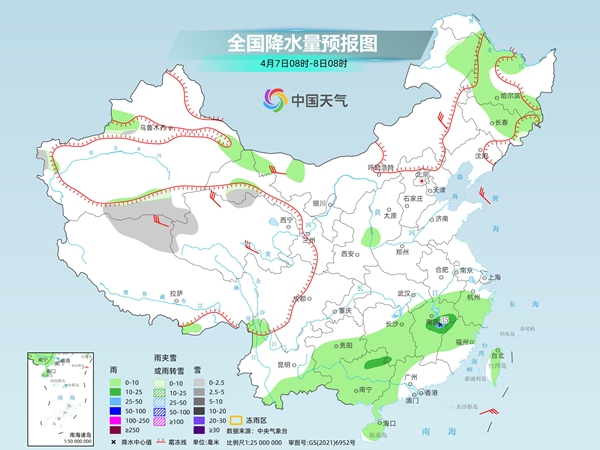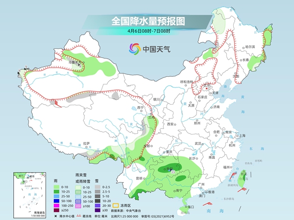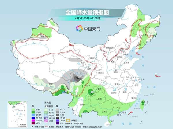 具体来看,中央气象台预计,今天,黑龙江东南部、吉林东部、新疆沿天山地区、西藏东北部、青海北部和南部、甘肃南部、川西高原中北部等地部分地区有小到中雪或雨夹雪,其中,川西高原北部等地部分地区有大到暴雪。新疆伊犁河谷、西藏东南部、黑龙江西部和南部、吉林中西部、辽宁东部、湖南南部和西部、广东、广西、四川盆地、重庆、贵州、云南大部、台湾岛等地部分地区有小到中雨,其中,西藏东南部、四川盆地东南部等地部分地区有大雨。