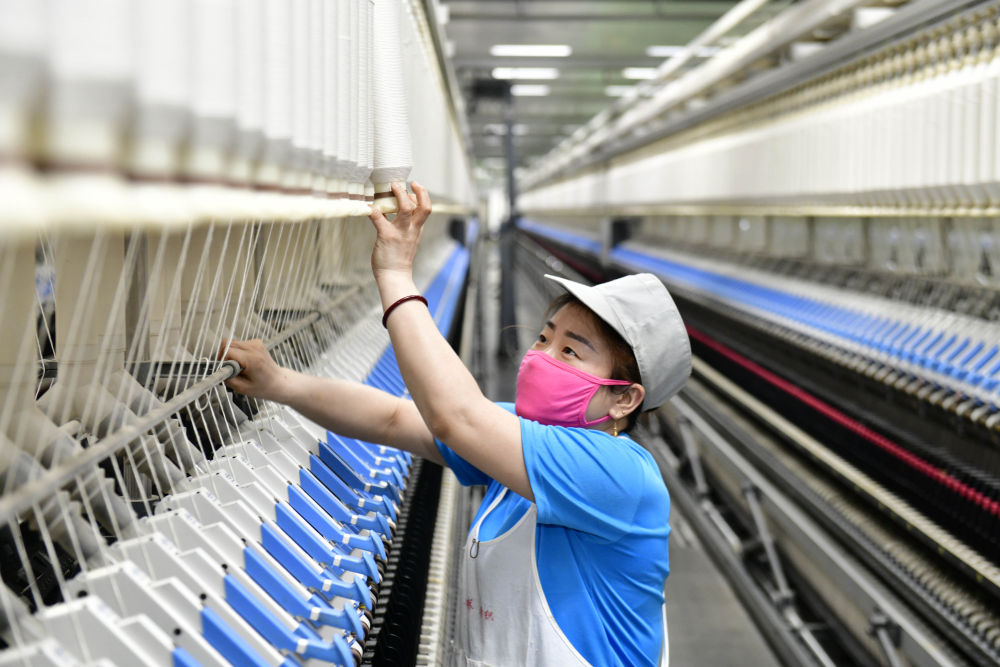 2025年3月17日,在山东魏桥纺织科技研发中心有限公司,工作人员在智能织机前忙碌。新华社记者 郭绪雷 摄