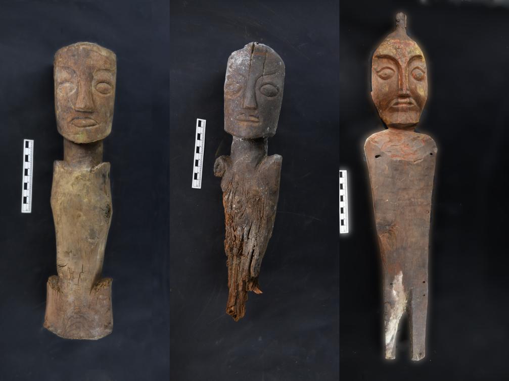 桑达隆果墓地出土的木俑。(西藏自治区文物保护研究所供图)