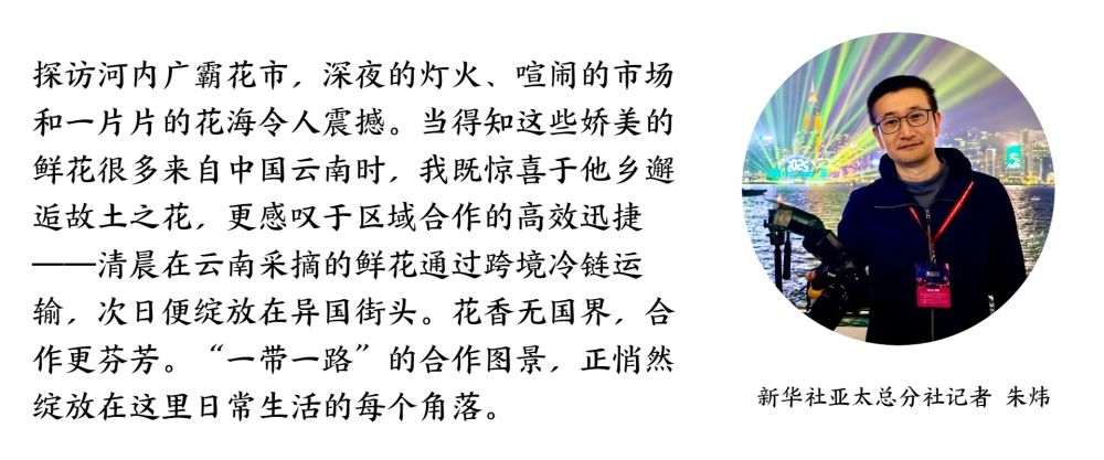 当第一缕晨光洒向河内街头,装点着云南鲜花的“自行花车”和三轮车穿梭于河内大街小巷,“一带一路”合作的美好图景,正悄然绽放在日常生活的每个角落。