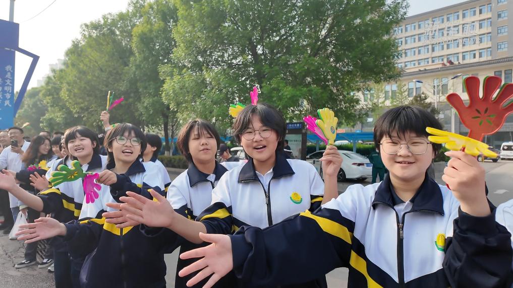 赛道沿途几乎每隔100米就有啦啦队为选手加油鼓劲。