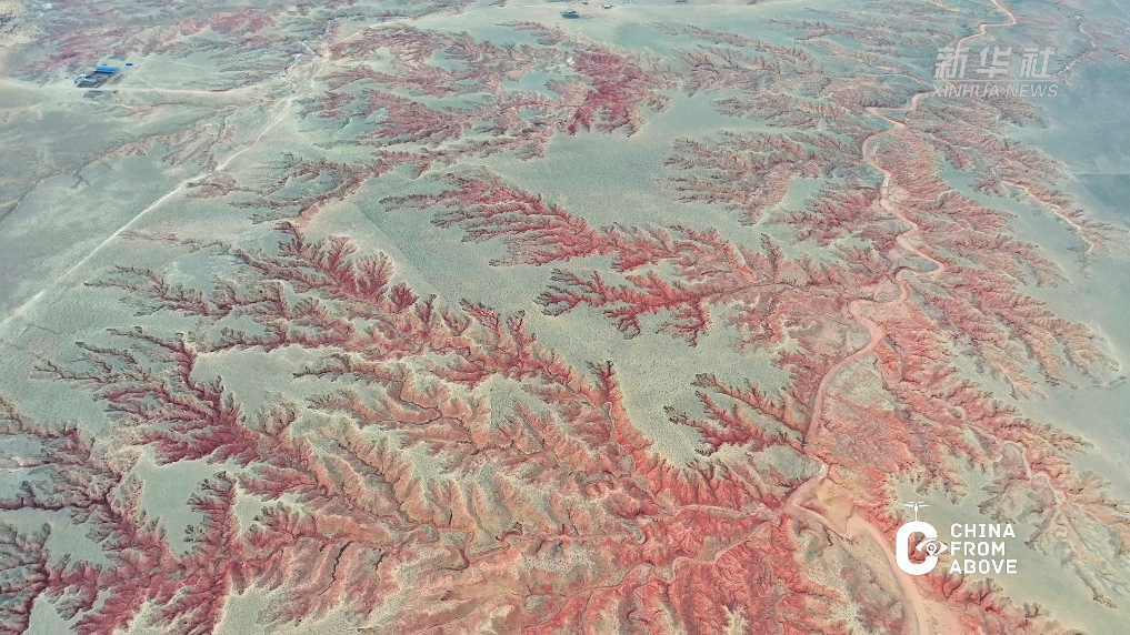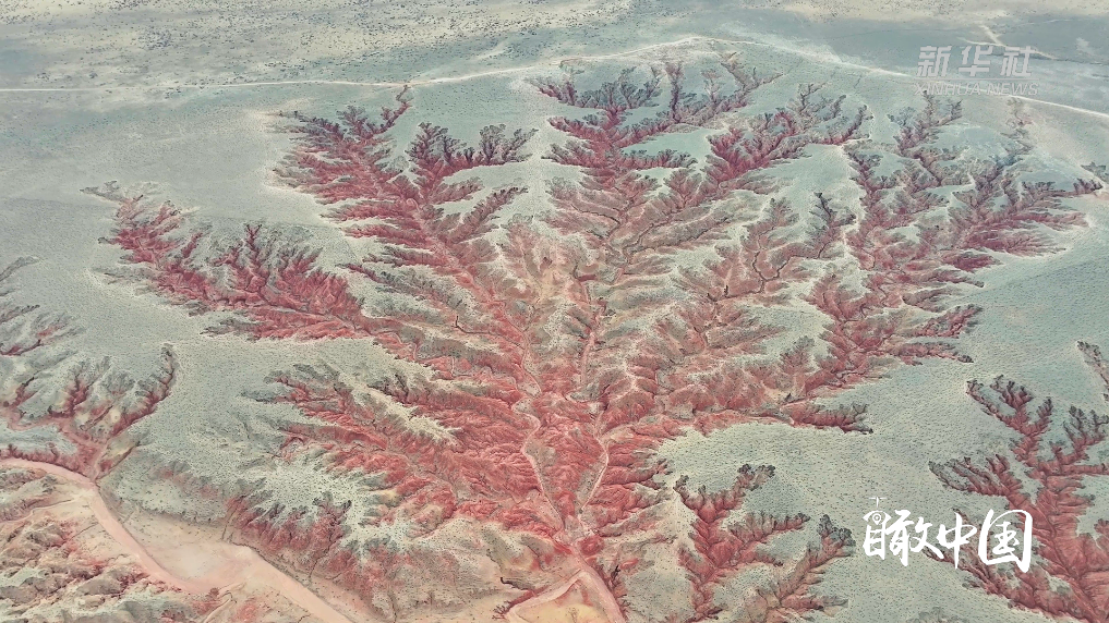 当深红的沟壑与嫩绿的草原相遇,春天在内蒙古鄂托克草原绘就出一幅令人惊艳的天然画卷。从空中俯瞰,历经岁月雕琢的沟壑好似红色的大树,在大地上舒展、生长,令人惊叹。