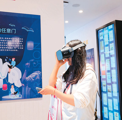 近日,云南省第四届全民阅读大会在昭通市昭通古城举行。活动包括惠民书展、非遗体验、文创展销等活动,营造爱读书、读好书、善读书的书香氛围。图为市民在云南省昭通市一家书店体验VR阅读。新华社记者 高咏薇摄