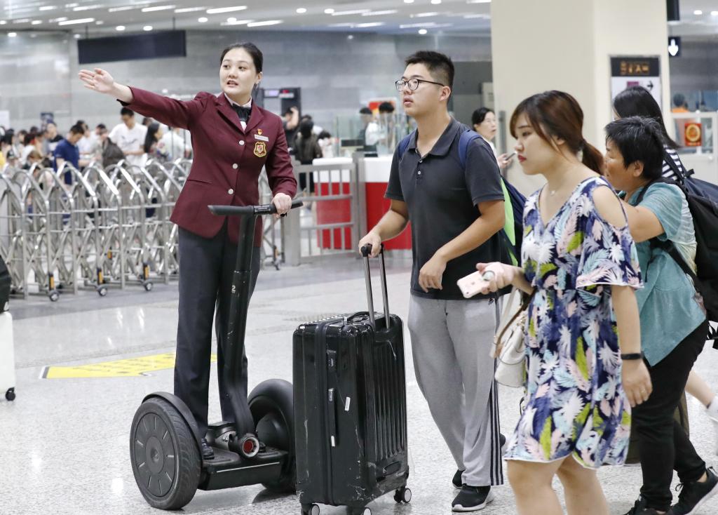 “有了平衡车,乘客更容易找到我们,我们也能更快发现需要帮助的乘客,服务响应速度提升了一倍。”高煜自豪地告诉记者,“如今这项特色服务品牌被命名为‘小煜流星轮’,已推广到国家会展中心站、人民广场站、徐家汇站等多个重要换乘枢纽。”