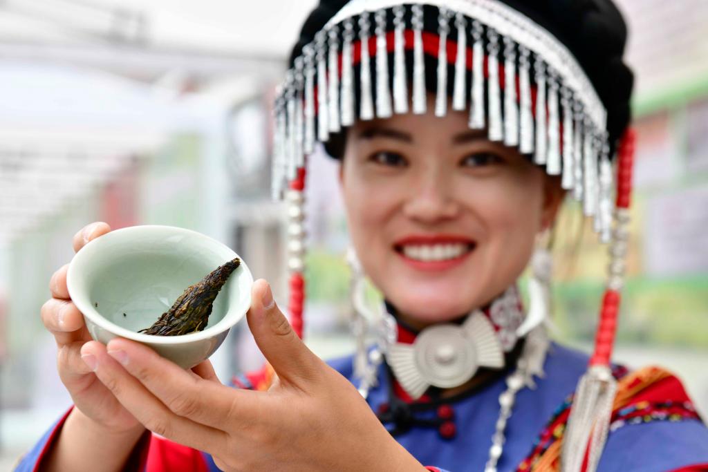 一名参展商展示贵州孃孃茶。新华社记者郭绪雷 摄