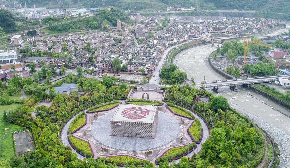这是2023年拍摄的四川省汶川县映秀镇风貌(无人机拍摄)。新华社记者 薛玉斌 摄