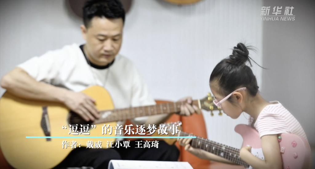 在安徽安庆,8岁女孩丁心怡(昵称 “逗逗”)用一把特制的反手吉他,弹奏出震撼人心的生命旋律。