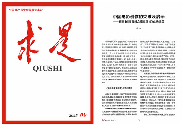 党支部姜超同志牵头撰写的《中国电影创作的突破及启示——动画电影〈哪吒之魔童闹海〉成功探因》在2025年第9期《求是》杂志发表。