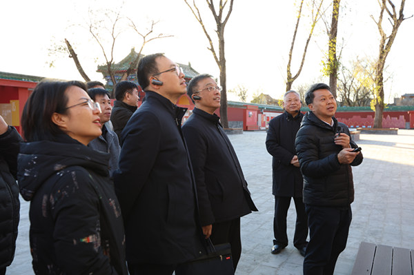 党支部赴北京市先农坛开展主题党日,作者(右一)为党员干部讲解“北京中轴线”申遗有关工作。