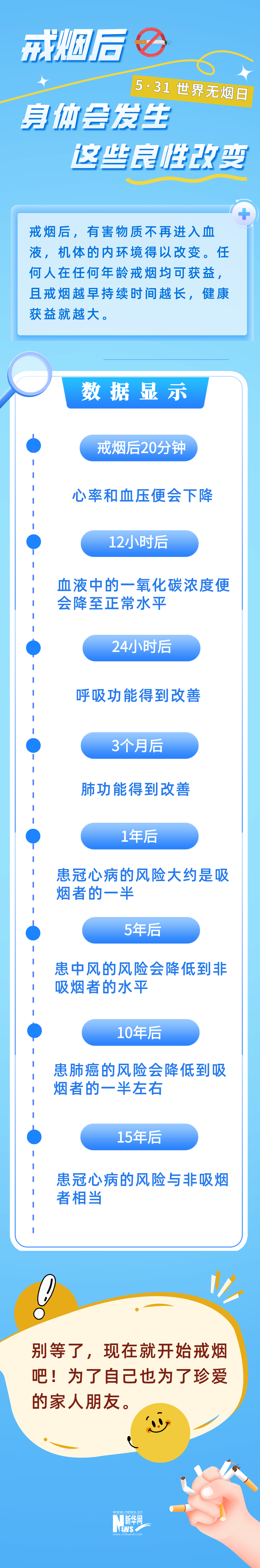 吸烟对身体的伤害远超想象,任何时候戒烟都不晚。戒烟后,身体会发生这些良性改变!