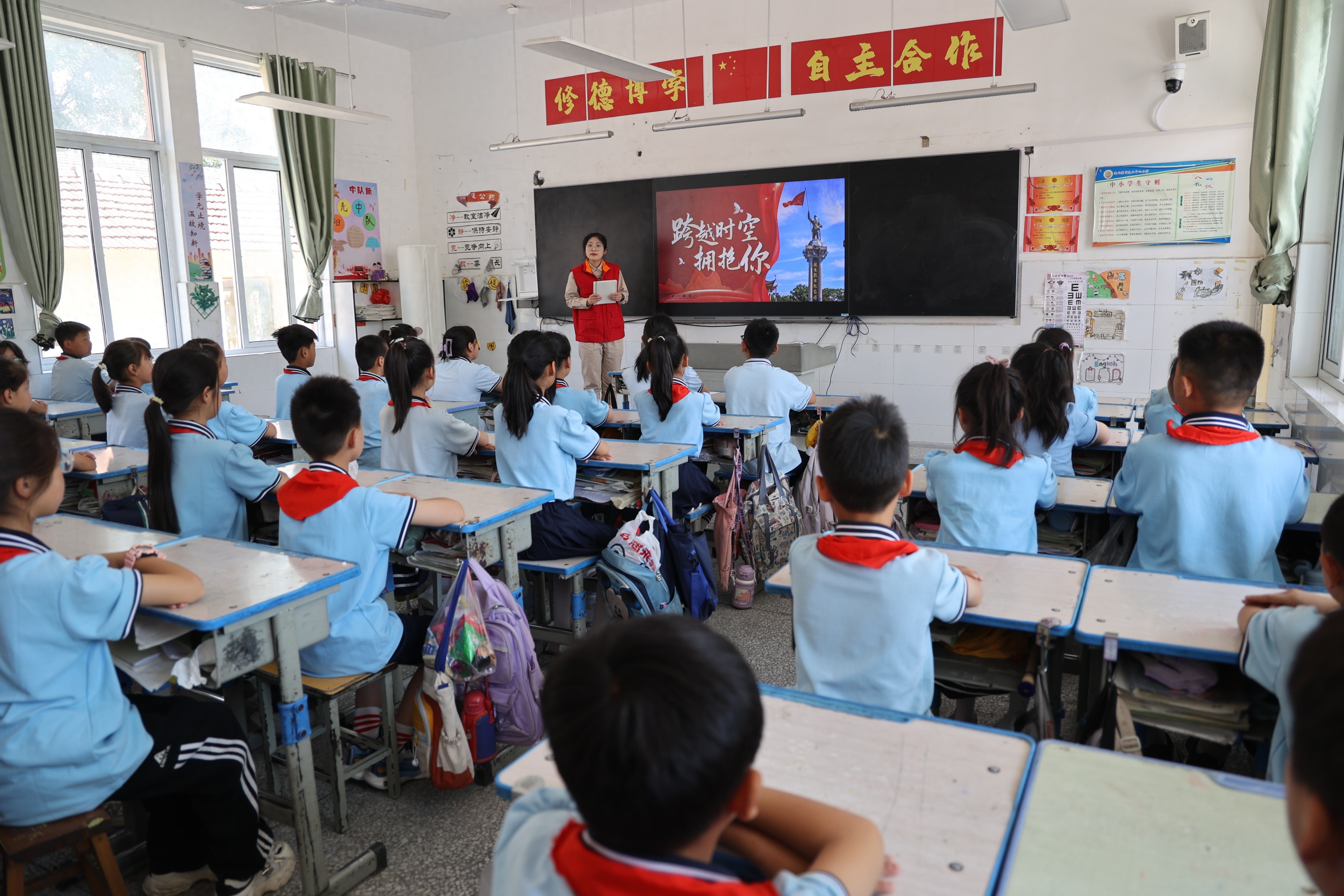 当天,在连云港市抗日山小学四年级一班的教室里,服务队队员刘晓楠对着屏幕上AI复原的图片,为孩子们讲述抗战烽火故事。随着昔日英雄的故事在光影中重现,孩子们正襟危坐、聚精会神,沉浸式感受那段烽火岁月。随后,孩子们拿起笔,以稚嫩的笔触,在信纸上写下想对抗战英雄说的话。朱海璐和蔡醯羲走上讲台,声音虽然略显拘谨,但是情感真挚。朱海璐说:“彭雄爷爷,我们今天的教室好亮堂,窗外树都绿了,真希望您能看见……”
