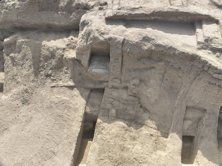 2024年11月拍摄的新疆喀什莫尔寺遗址小台地北部建筑、排水沟遗迹。新华社发(中央民族大学供图)