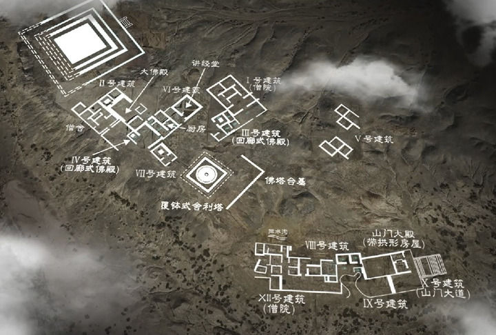6年间,在考古人员手铲下,僧舍、回廊式佛殿、长方形大佛殿、讲经堂、厨房、储物间、餐厅等建筑纷纷浮出地面。共发掘4600平方米面积,发现遗迹包括18座单体建筑共计62个房间、2条阶梯式踏道,出土上万件各类文物和文物残片。