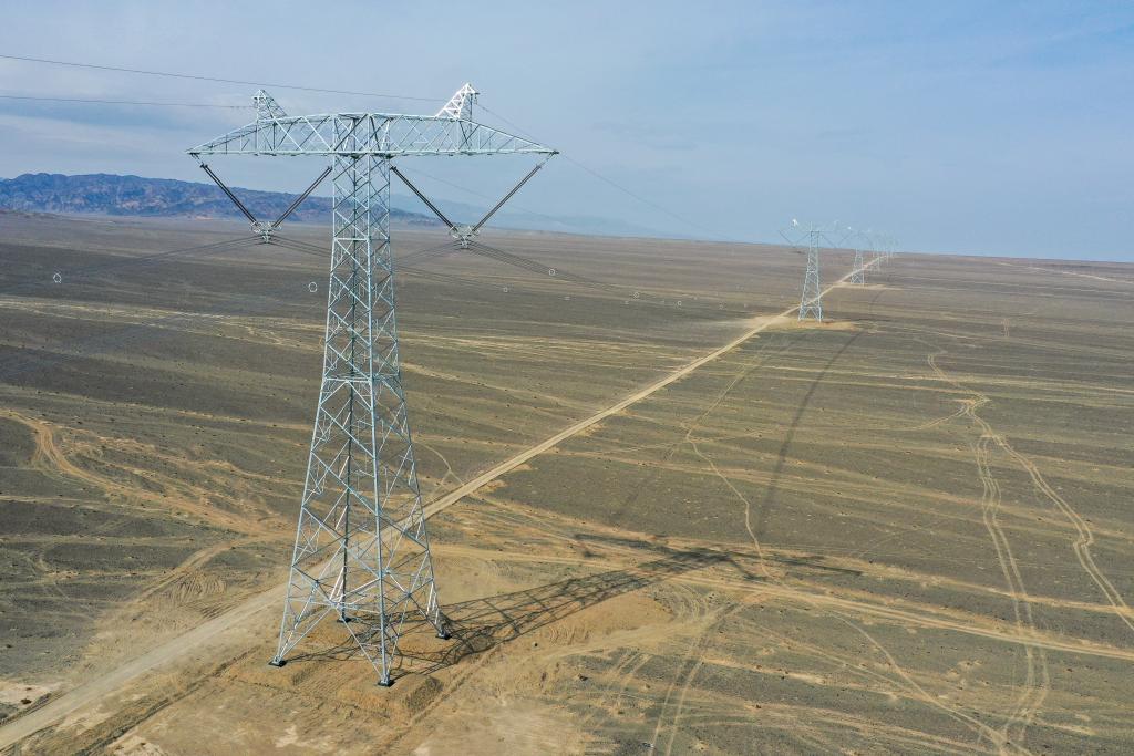 这是3月21日拍摄的哈密—重庆±800千伏特高压直流输电配套线路(无人机照片)。新华社记者 丁磊 摄