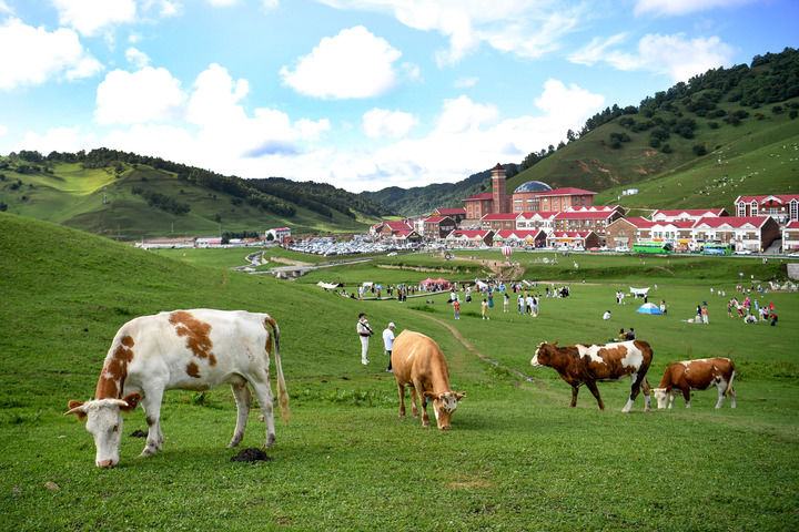 游客在位于宝鸡市陇县的关山草原景区游览(2024年8月3日摄)。新华社记者 邹竞一 摄