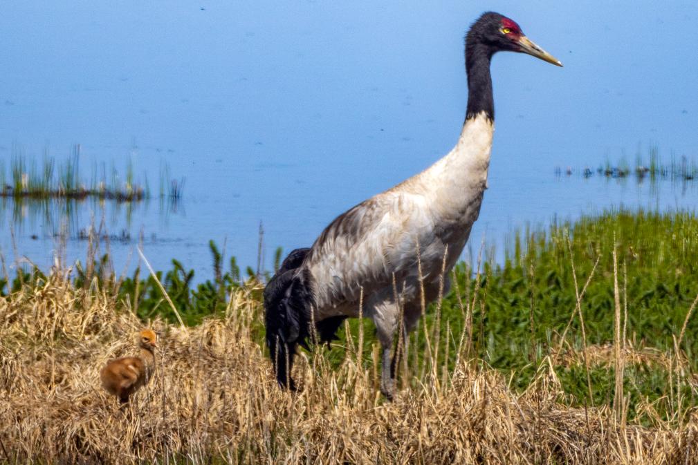 黑颈鹤生活在高原淡水湿地,是世界上唯一生长、繁殖在高原的鹤类,也是国家一级保护动物,有“高原仙子”的美称。它们栖息于海拔2500到5000米的高原沼泽地、湖泊及河滩等湿地环境。喜食植物叶、根茎、块茎、水藻、玉米、散落在收割过的田野里的青稞粒等,也吃昆虫、蛙、小鱼等动物性食物,其叫声高亢而有穿透力。