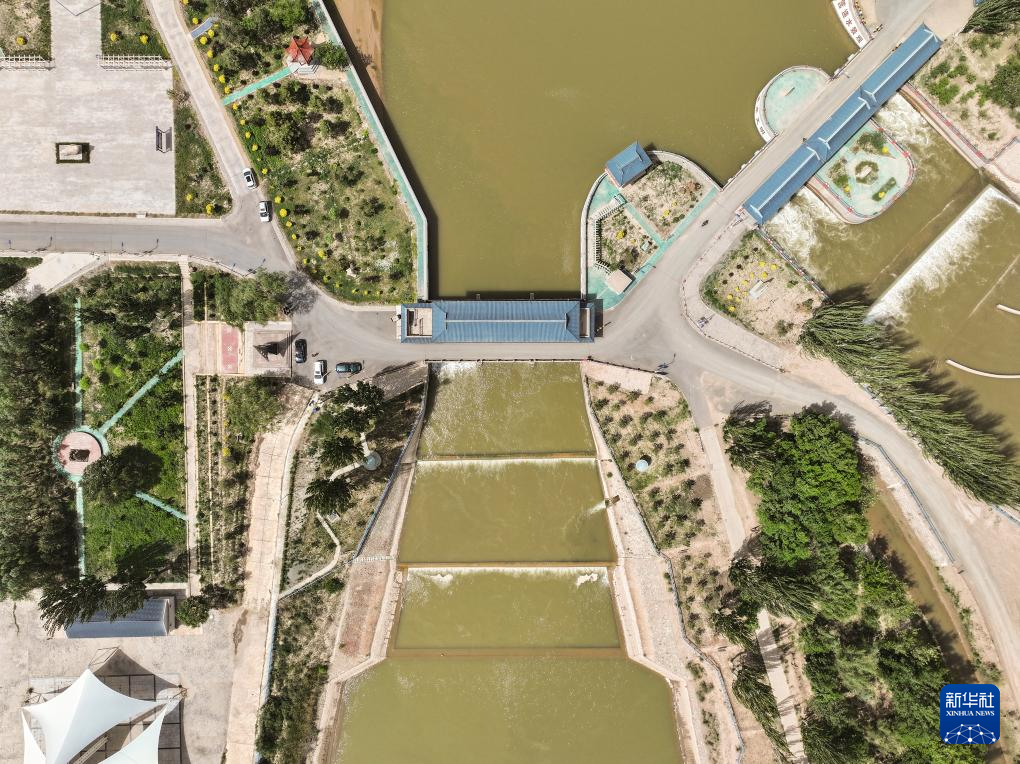 这是5月28日拍摄的位于内蒙古巴彦淖尔市磴口县的三盛公水利枢纽(无人机照片)。 新华社记者 马金瑞 摄