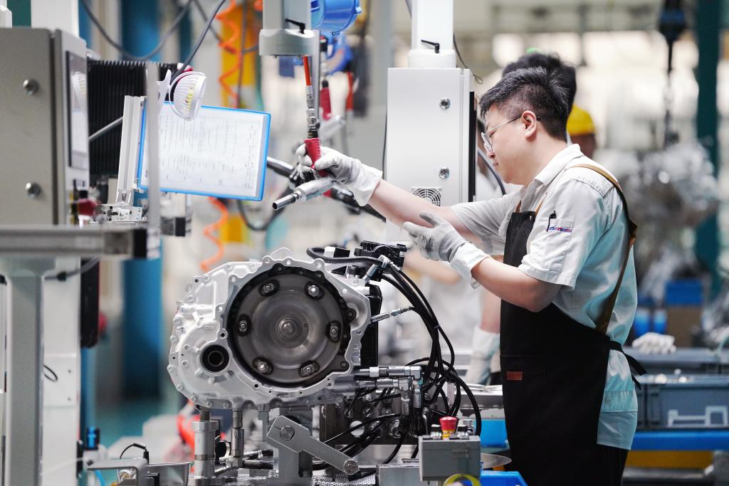 在哈尔滨东安汽车动力股份有限公司生产车间,智能生产设备对产品进行加工与组装作业(7月24日摄)。