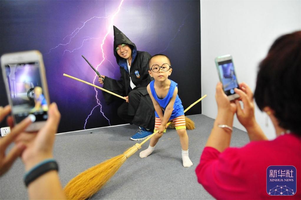 2017年7月1日,观众在北京751“活的3D博物馆”互动拍照。新华社记者 肖潇 摄