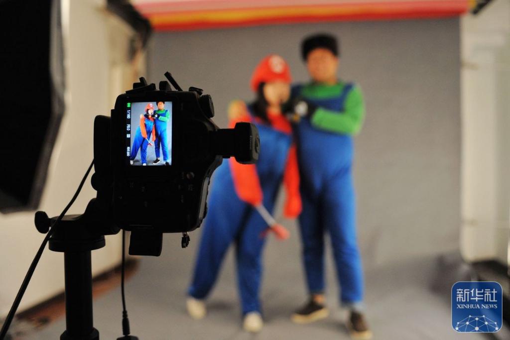 2024年7月15日,游客在重庆市江北区的一家自助照相馆内体验自助拍照。新华社记者 王全超 摄