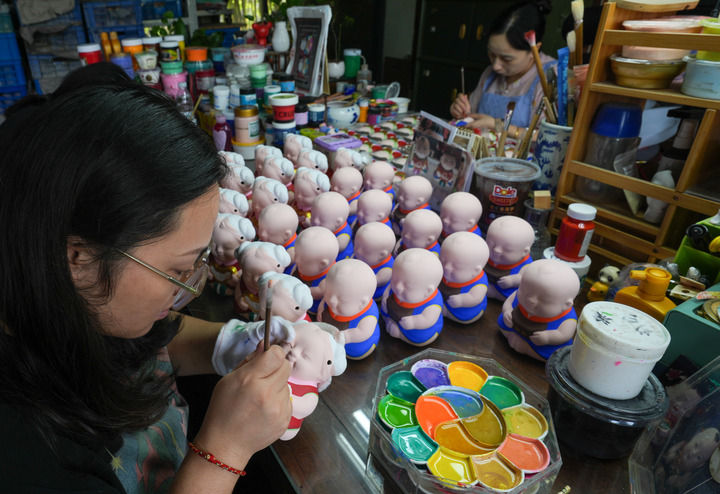 2024年9月10日,无锡惠山泥人厂的工作人员在制作泥人。泥塑(惠山泥人)是第一批国家级非物质文化遗产项目。新华社记者 杨磊 摄