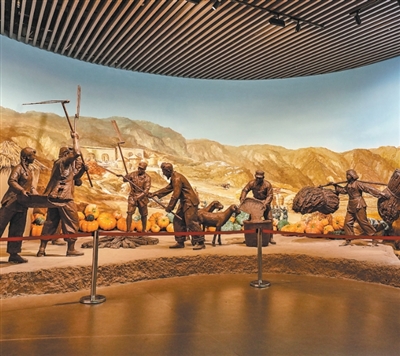南泥湾大生产纪念馆内的雕塑。
