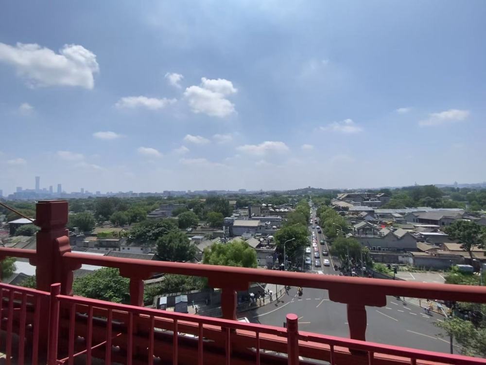 2025年8月3日,在鼓楼二层向南眺望,可以看到景山万春亭、北海白塔等。新华社记者 罗鑫 摄