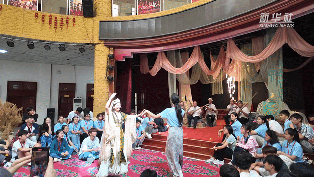 这是一场与传统的相遇。在十二木卡姆的故乡,学生们随着“音乐活化石”的律动打起节拍;漫步莎车县喀赞其老街,绘制漆扇、打起陀螺、街头欢舞,古老的律动与青春的欢笑交响;走进克州玛纳斯史诗大剧院,沉浸式欣赏柯尔克孜族世代传诵的英雄史诗,感受中华民族优秀传统文化传承。
