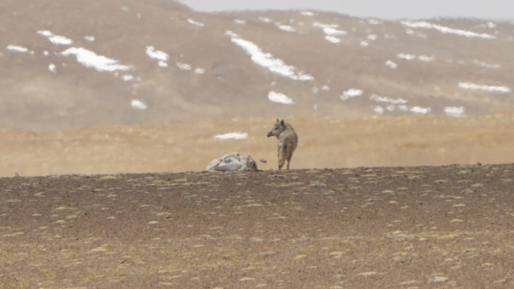 羌塘国家级自然保护区核心区中的野狼和已经死去的母羊。
