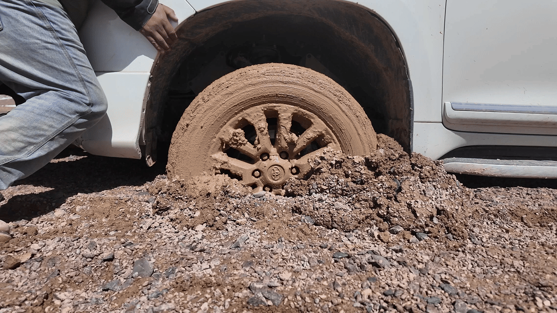 前路看起来稀松平常,引擎的怒吼却变得愈发徒劳。集所有人之力,皮卡被从大地的俘获中解救,但很快,车队中大半车辆都遇到了麻烦,仿佛“葫芦娃救爷爷”一般一辆接一辆地陷入了沉寂。轮胎在淤泥中空转,卷起的不止是泥点,还有我们的时间。