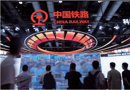 2025年7月9日,与第十二届世界高速铁路大会同期举行的第十七届中国国际现代化铁路技术装备展览会上,观众参观中国国家铁路集团有限公司展台。