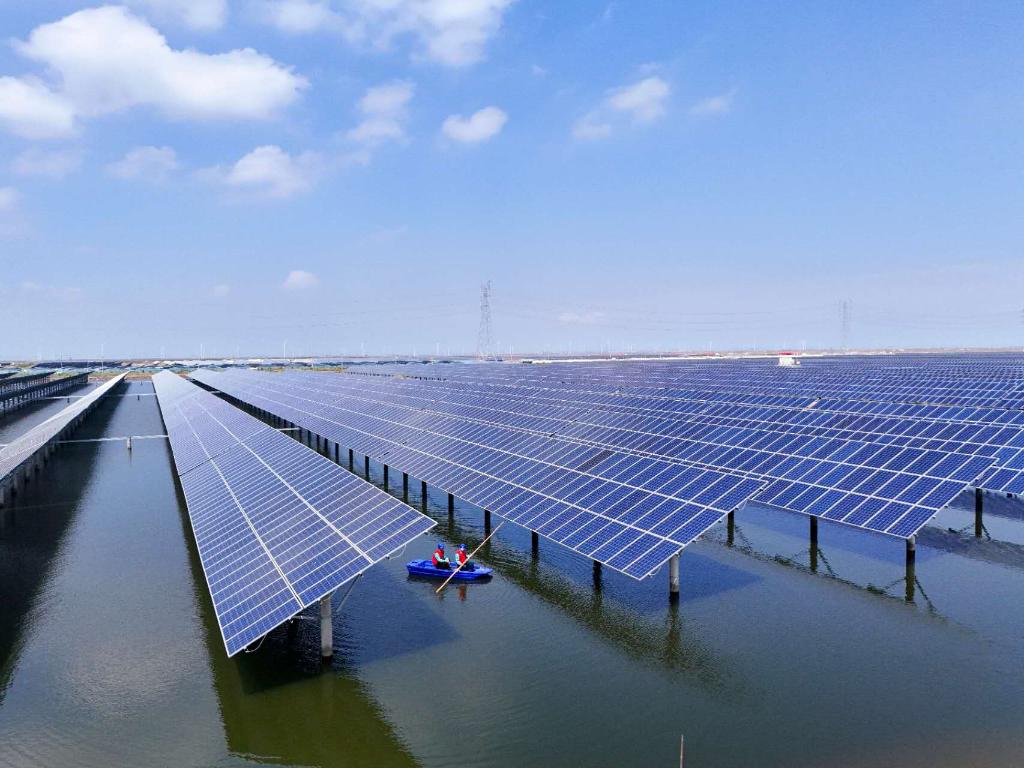 向东行进,记者抵达滨州市沾化区滨海镇的通汇“渔光一体”现代产业园。国网沾化区供电公司滨海供电所党支部书记宋凯说,这里曾是一片白茫茫的盐碱荒滩,如今变身为“光伏+养殖”的“绿色综合体”。为保障项目发电和养殖效益,他们精准测量光伏板倾角和架设间距,并安排巡检人员定期检查光伏板、逆变器等设备,确保绿色电能稳定输出。