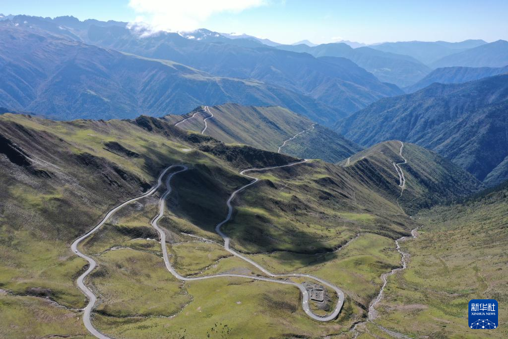 9月24日拍摄的通往夹金山垭口的路(无人机照片)。新华社记者 胥冰洁 摄