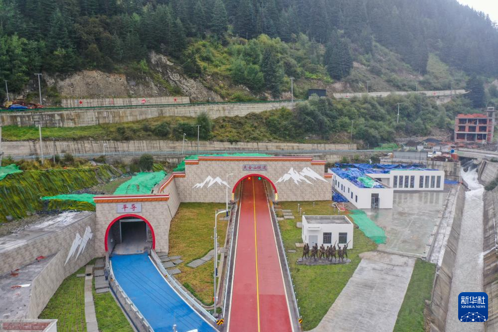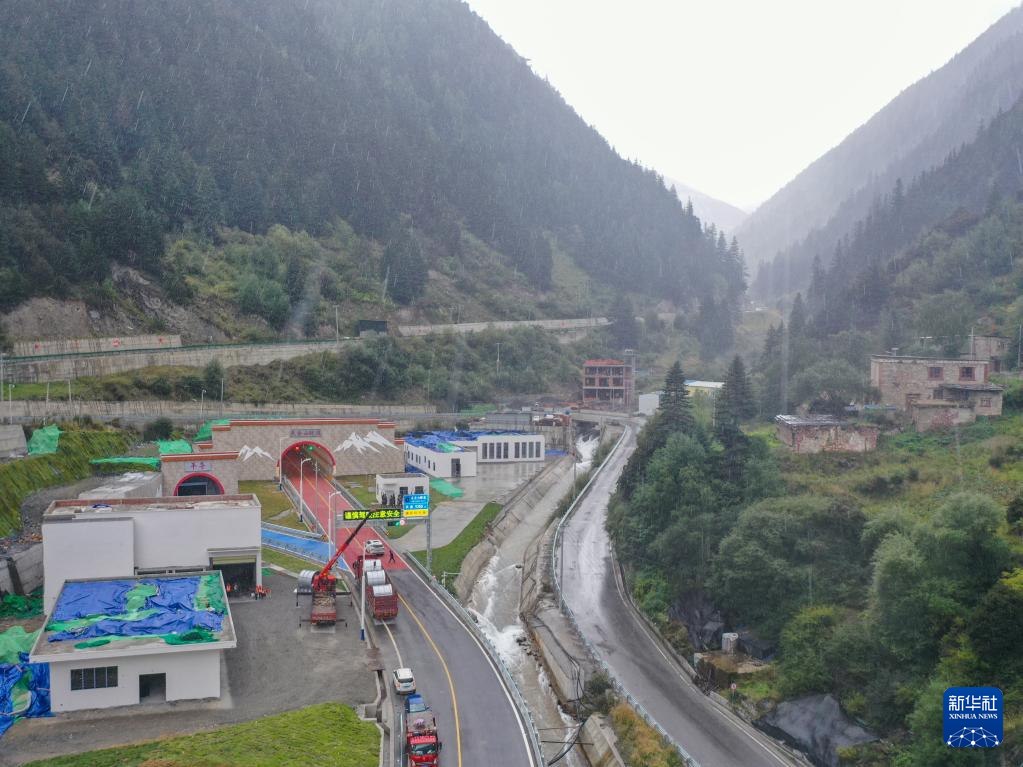 9月28日拍摄的国道351线夹金山隧道宝兴县境内入口。新华社记者 胥冰洁 摄