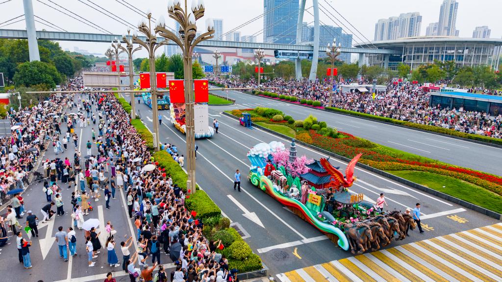 2025“河山添锦绣——文旅IP武汉城市大巡游”在武汉东湖新技术开发区高新大道举行。新华社发(魏铼 摄)
