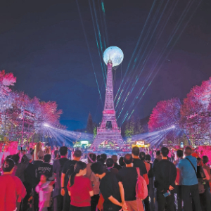 长假期间,从上午10时至晚9时,艺术剧场的《非洲鼓热场》《迎国庆贺五洲》、“埃菲尔铁塔”的《一起看烟花》、水舞台的《非遗打铁花》等60余场演艺活动轮番上演。