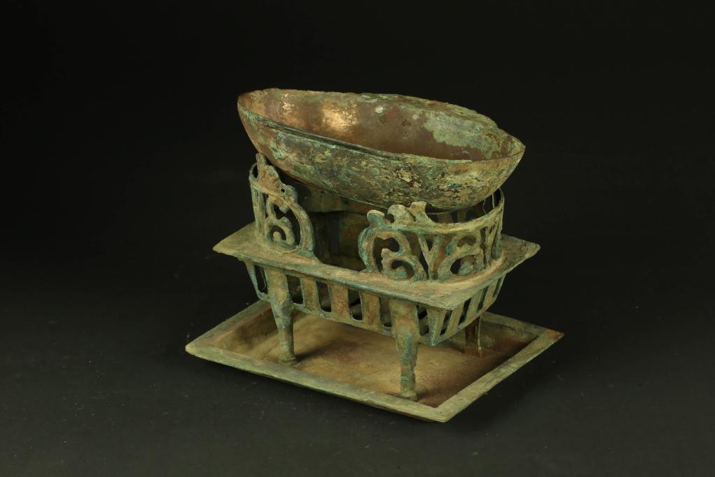 图为海昏侯墓出土的青铜染炉。新华社发