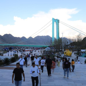 “在600多米高空,玩的就是心跳!”在社交平台上,不少网友分享了自己的体验。还有人在周边露营,观看夜晚的水幕灯光秀。当300米宽的瀑布从大桥倾泻而下,配合高精度激光投影系统,具有地域特色的山水意境和人文故事在峡谷动态呈现。