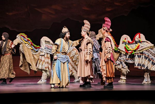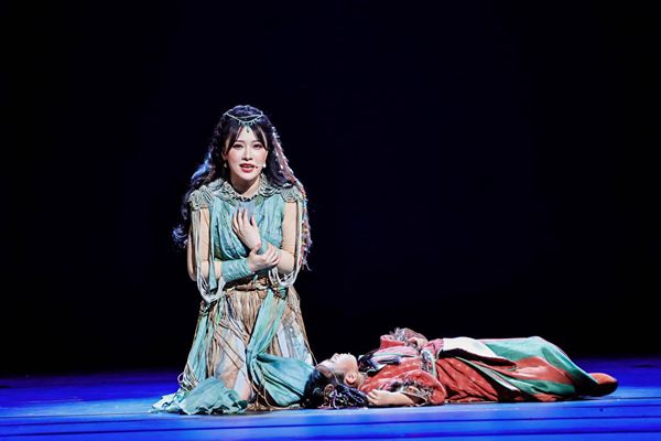 此次创作在舞台设计上新意不少,如用多媒体技术还原沙暴、市集、洞窟的奇幻场景;旋转舞台的裸眼3D效果与纱幕投影交织,仿佛承载着时光的流转,将科技与传统美学完美融合;服装造型结合多元风格;现代化布景一次次随剧情流转,合唱与群舞叠合,货物与人流同频......观众仿佛穿越时空,置身于丝路之中,亲历了一场跨越时空的情感之旅。