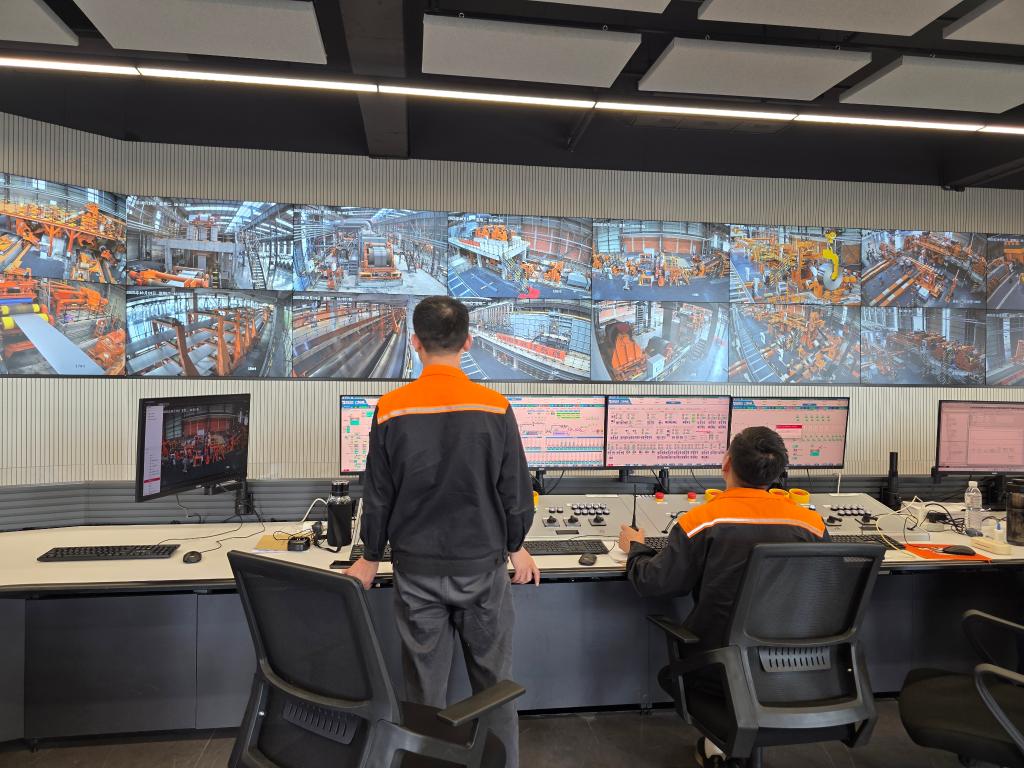 不同于传统印象中“火花四溅、热浪袭人”的生产场景,在这个整洁有序、高度智能化的现代车间,偌大的工厂里只有几个工人在操作设备,中控室的巨幅屏幕上各类数据实时跳动,生产流程全貌清晰展现。“企业从2021年持续推进智能化改造,引入人工智能大模型,不但生产效率高了一大截,工人们也都变成了穿戴整洁的操作员。”公司总裁王文辉说。