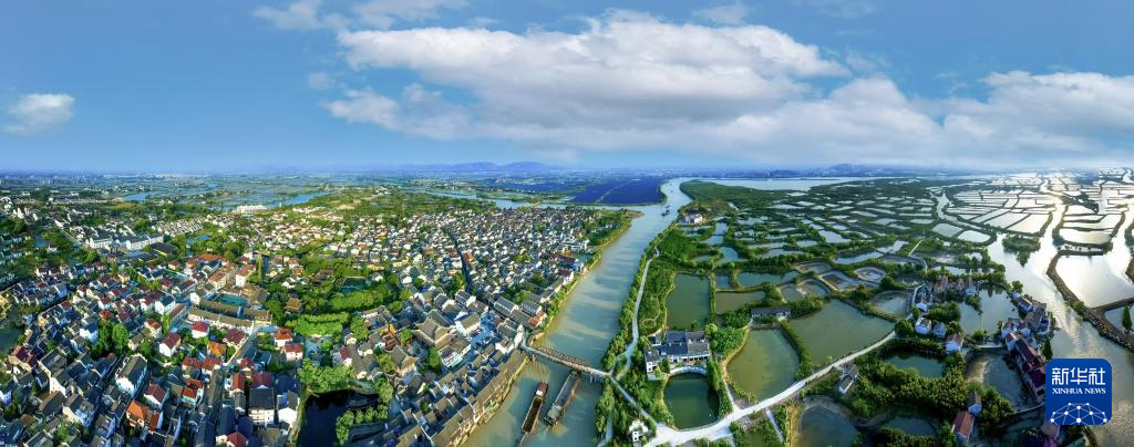 这是2024年8月拍摄的浙江省湖州市南浔区和孚镇荻港村全景(无人机照片)。新华社发