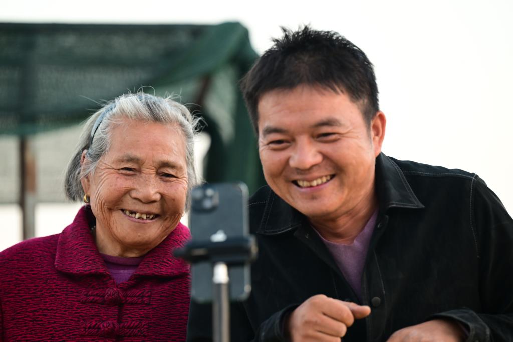 王甜甜(左)和戴淑英一起拍摄短视频。