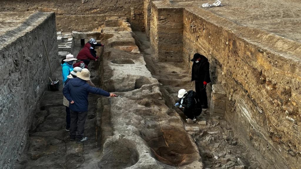 考古人员对辽上京遗址皇城内新发现的院落遗址进行发掘研究。新华社发