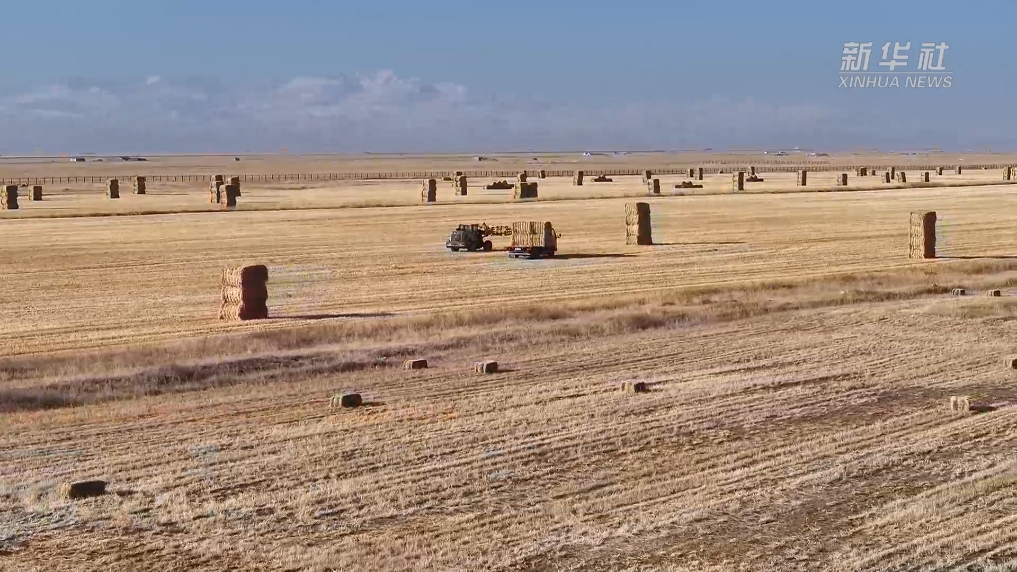 面对新一轮强冷空气即将来临,新疆巴音郭楞蒙古自治州各地抢收饲草料为牲畜过冬备足“口粮”。
