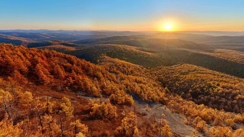 这是9月28日在内蒙古呼伦贝尔市牙克石市绰河源镇拍摄的摩天岭林海日出。新华每日电讯记者 马金瑞 摄