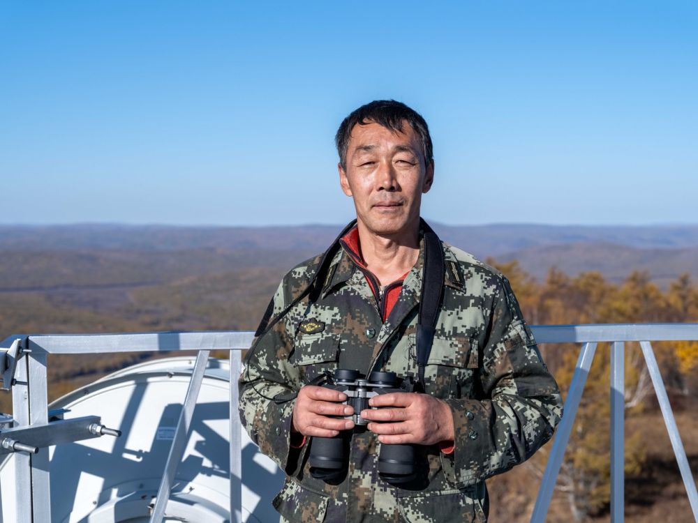 9月28日,在内蒙古呼伦贝尔市牙克石市绰河源镇摩天岭瞭望站拍摄的孙忠全。新华每日电讯记者 马金瑞 摄
