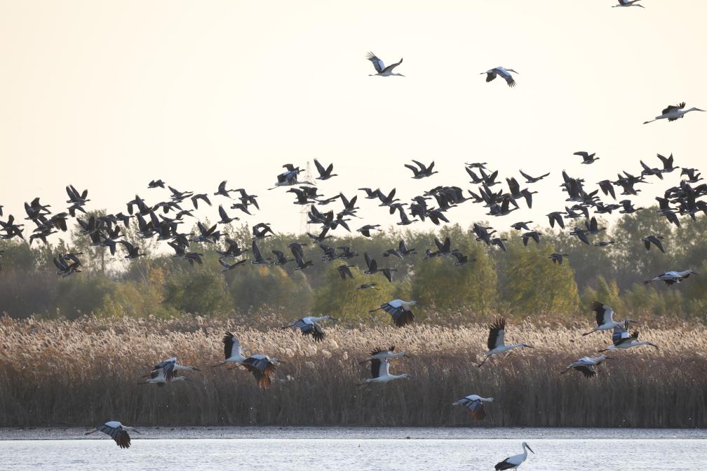 目前,天津已进入秋冬季候鸟迁徙高峰期。在七里海湿地,东方白鹳等候鸟在10月初率先“报到”,比去年提前了近10天,单日观测到东方白鹳最大值2300余只、白琵鹭3200余只、花脸鸭5万余只。