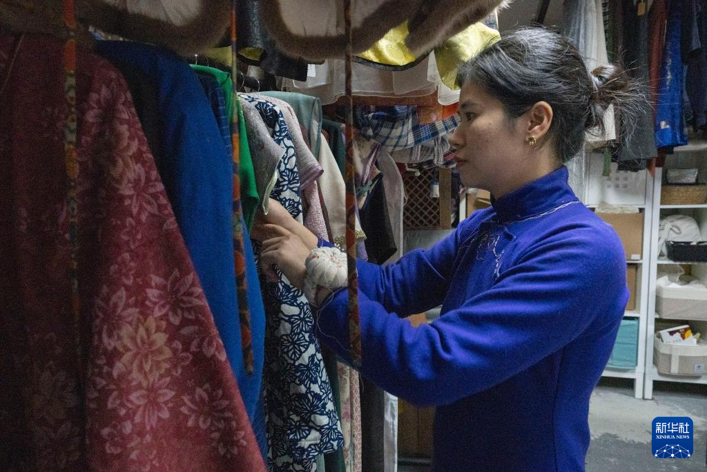2025年11月13日,在上海川沙古镇东侧旗袍工作室,店主阳慧在整理服装。 新华社记者 董博婷 摄