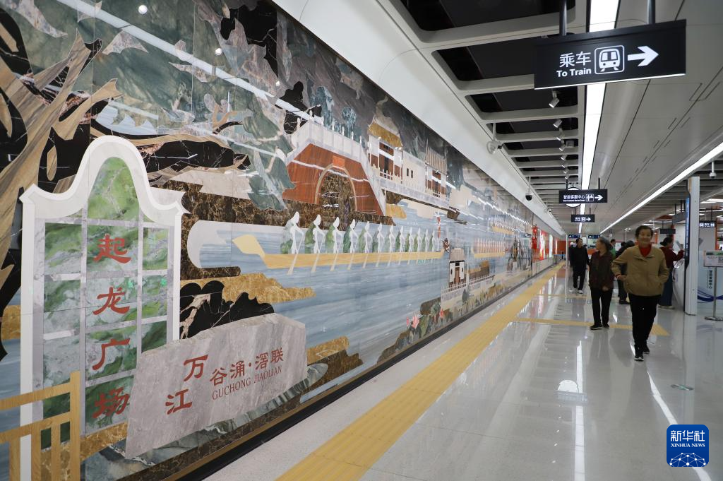 11月28日,市民在东莞轨道交通1号线曲海站观看文化墙。新华社记者 田建川 摄